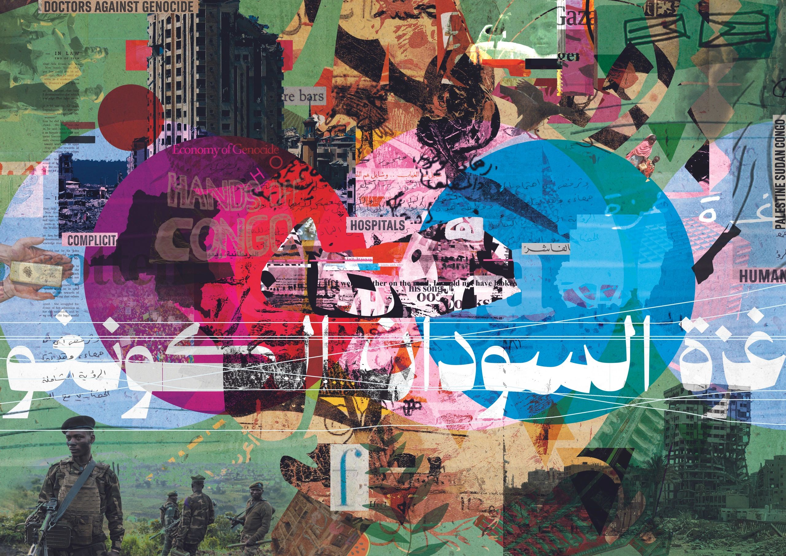 Featuring original artwork by Ahmed Khalidi, a Palestinian-Australian artist, each month pairs a powerful visual composition with poetry by Palestinian writers and a documented chronology of events. Together, they trace the massacres, atrocities, starvation, displacement, and systematic destruction inflicted on Palestinians—while also honoring their endurance, love, and unwavering resistance.